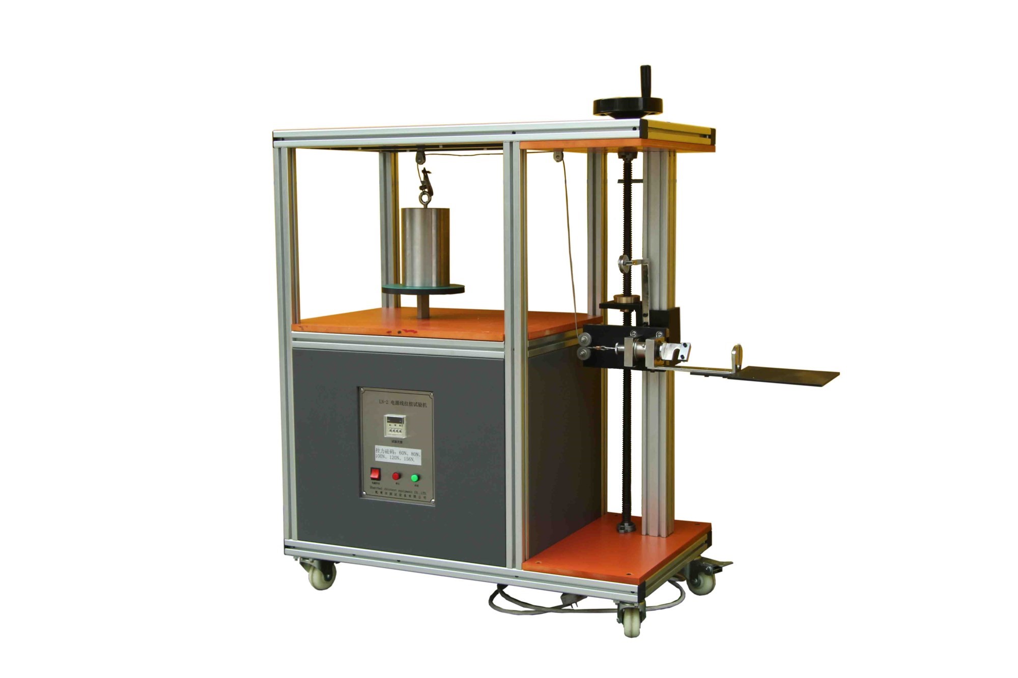 17 | 軟纜保持力試驗機 (GS-RL106) | 符合GB/T2099.1-2021標準中第23.2條款及圖20、IEC60884-1:2013圖20試驗要求 | 設備概述: 本設備符合GB/T2099.1-2021標準中第23.2條款及圖20、IEC60884-1:2013圖20試驗要求;用于對插頭導線與電器附件固定是否牢固進行檢驗。 試樣范圍:可拆線插頭、可拆線移動式插座、不可拆線插頭及不可拆線移動式插座 結構及功能:按標準,檢測插頭導線與電器附件的牢固程度 主要技術參數: 1、設備電源: AC220V / 50HZ; 2、負載砝碼:10N、60N各1個,20N兩個; 3、施力頻率:1次/S; 4、施力次數:0-9999次,可調,默認10。 檢驗方法: 本裝置用于檢驗電源插頭線的導線壓緊能力,試驗方法為將插頭朝上,插頭線穿入橫杠,插頭線下端吊掛規定之砝碼,然后以每秒 1 次的速度上下擺動100 次,擺動行程為偏心輪的偏心距65mm,再檢測插頭是否受損及電線與插頭之間不得脫落。 |